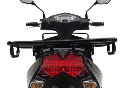 - Vlakke vloer en helmhaak: Afgezien van het voor- en achterrek is de vlakke vloer een extra ruimte om spullen te vervoeren. Ook kunnen rijders met behulp van de haak de helm vooraan ophangen om te voorkomen dat deze valt.